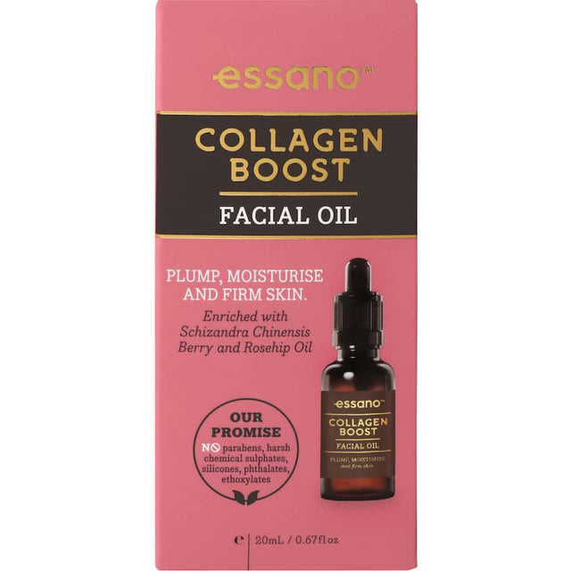 Experience the rejuvenating power of Essano Collagen Boost Facial Oil, an essential addition to your skincare routine. This luxurious facial oil is expertly formulated with potent ingredients like schisandra chinensis berry and rich rosehip oil, specifically designed to deliver intense moisture and hydration to the skin's upper layers. Achieve a firmer, more elastic complexion in just 8 weeks with this remarkable product!