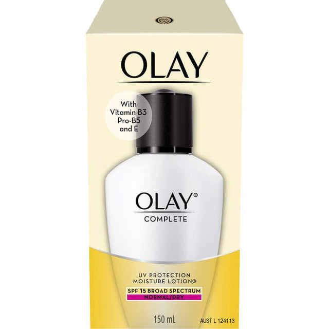 Discover the ultimate defense for your skin with Olay Complete UV Protection Moisturizing Lotion for Normal & Dry Skin. This lightweight daily moisturizer is enriched with essential vitamins B3, Pro-B5, and E, providing the hydration your skin craves while protecting it from harmful UV rays. With an SPF 15 broad spectrum, this lotion not only nourishes but also shields your skin from sun damage and premature aging. Ideal for those with normal to dry skin, Olay Complete ensures your complexion stays radiant and moisturized throughout the day. Experience the perfect blend of moisture and sun protection to enhance your skincare routine. Whether you're heading outdoors or staying in, this lotion is your go-to solution for all-day hydration and defense. Embrace the confidence that comes with healthy, protected skin. Make Olay Complete UV Protection Moisturizing Lotion your daily essential and enjoy the benefits of a balanced, moisturized complexion. Shop now at Smartfox AU and elevate your skincare to the next level!