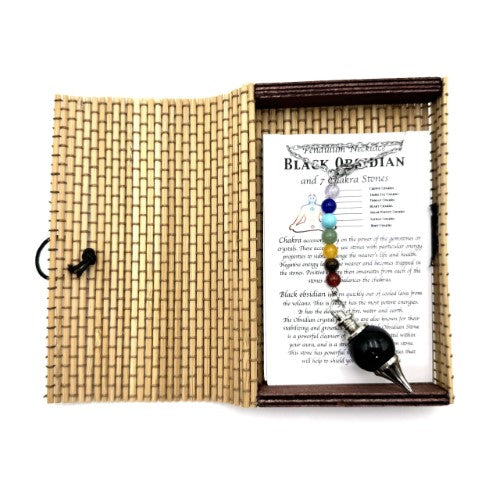 Experience the transformative power of our beautiful Pendulum Necklace featuring Black Obsidian and colorful Chakra Beads. Measuring 70 x 9 cm, this unique piece blends elegance with functionality. Black Obsidian is known for its grounding properties, shielding you from negativity while enhancing your spiritual journey. The vibrant Chakra beads not only add style but also support energy healing and meditation. This stylish necklace transitions seamlessly from a chic accessory to a practical pendulum, making it perfect for spiritual practices. It arrives in a Natural Bamboo Gift Box (13x8 cm), making it a thoughtful gift for those interested in holistic healing. Elevate your wellness journey and showcase your unique style with this enchanting piece that combines fashion and function. Embrace balance and attract positive energy into your life! Order now!