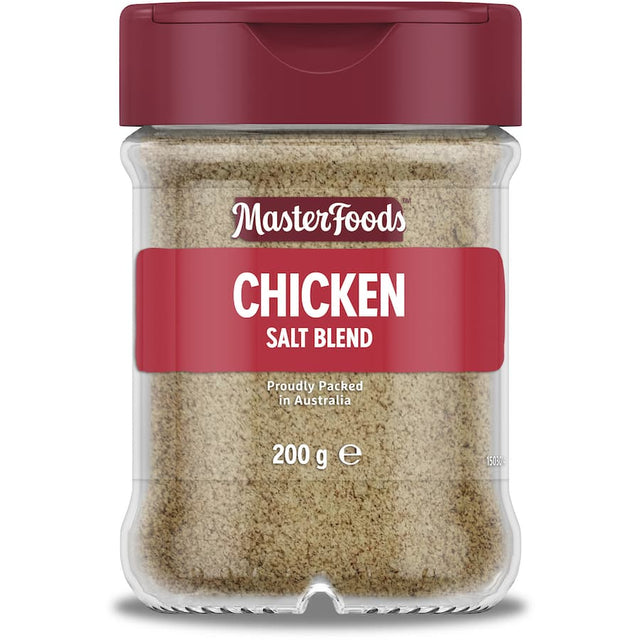 Enhance the flavor of your dishes with Masterfoods Chicken Salt, a versatile seasoning blend featuring a delicious chicken taste. Perfect for sprinkling on your favorite roasted or barbecued chicken, this savory salt can also be used as a tasty substitute for regular table salt on your hot chips for a mouthwatering twist. Conveniently packaged in a glass shaker jar for easy dispensing and storage. Elevate your meals with this must-have kitchen staple! Buy now from Smartfox AU and enjoy a burst of flavor in every bite.