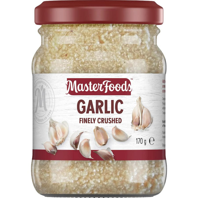Enhance your culinary creations with Masterfoods Garlic Finely Crushed. Made from the finest garlic, this versatile product is a must-have in any kitchen. Harness the bold flavor of fresh garlic without the hassle of peeling and crushing. Perfect for stir-fry dishes, marinades, sauces, and more. Elevate your recipes with a simple twist of the lid. With Masterfoods Garlic Finely Crushed, cooking delicious meals has never been easier.