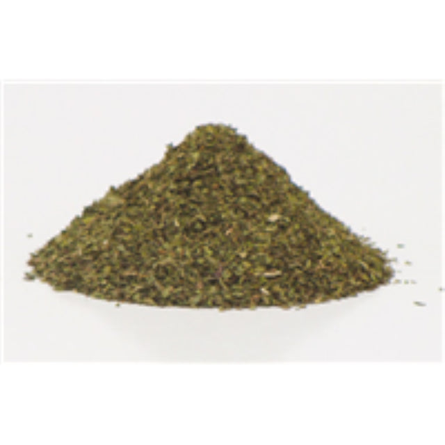 Dried rubbed leaves of mint (Mentha spicata L) which have been steam treated for microbiological control. Multipurpose Herb for Salads or Meat Dishes