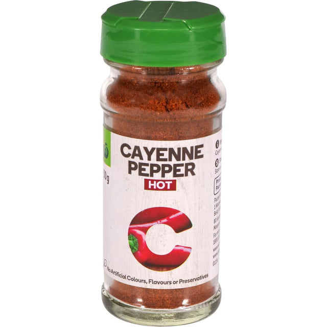 Ignite your culinary adventures with Woolworths Cayenne Pepper Shaker 30g! This essential spice is perfect for those who crave a little extra heat in their cooking. Made from all-natural ingredients, our cayenne pepper adds a vibrant kick to your favorite dishes, from seasoned meats to roasted vegetables. Use it to spice up soups, zesty sauces, and savory rubs, exploring new flavor horizons with every sprinkle. The convenient shaker bottle makes it easy to control your spice levels, ensuring every meal reaches the perfect balance of heat and flavor. This cayenne pepper is not only delicious but also boasts various health benefits, including digestive support and metabolism enhancement. Elevate your dishes effortlessly with the bold and fiery essence of Woolworths Cayenne Pepper. Perfect for both everyday cooking and special occasions, this versatile spice belongs in every pantry. Try Woolworths Cayenne Pepper today and transform your meals into an extraordinary culinary experience! No artificial colors, flavors, or preservatives means you can enjoy the spicy goodness guilt-free while making your food memorable and exciting.