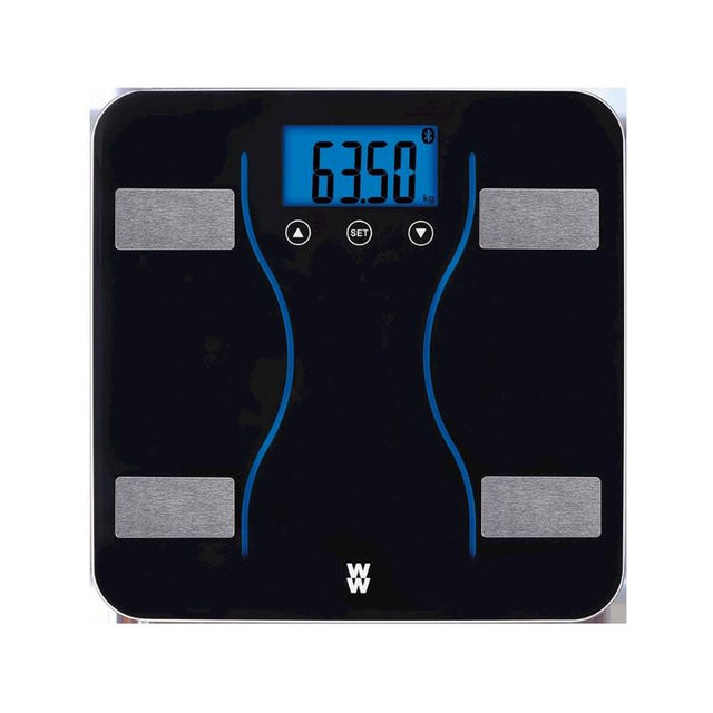 Take charge of your wellness journey with the Conair Body Analysis Bluetooth Diagnostic Scale, available at Smartfox AU. This innovative health scale combines advanced technology with user-friendly features to deliver comprehensive body analysis data at your fingertips. Using bio-impedance analysis (BIA), it accurately measures body fat, body water, and body mass index (BMI), ensuring you have a holistic understanding of your health metrics. Track your progress effortlessly with the ability to sync your weight automatically to the WW app, making it an excellent choice for members of the WW program. With a user memory for up to 10 individuals, this scale stores essential data like age, height, and gender for personalized measurements. Measuring a maximum weight of 182kg (400lbs), it offers precise readings in 0.05kg or 0.1lb increments. The large 4.8cm digital readout features a blue backlit display, ensuring visibility in any lighting. Its sleek design includes a modern 31.5cm x 31.5cm platform made of durable 6mm tempered glass, accentuated with stylish black and stainless steel elements and blue lighted accents. Conveniently powered by three long-life AAA batteries (included), this scale can also be used as a traditional weight scale, making it versatile for every user. Elevate your health monitoring experience with the Conair Body Analysis Bluetooth Diagnostic Scale and turn your health goals into achievements today.