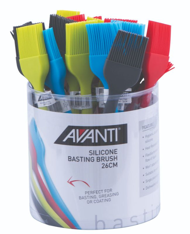Discover the Avanti 26cm Large Basting Brush Tub Set of 24, the ultimate kitchen companion designed for home cooks and professional chefs alike. Crafted with high-quality food-grade silicone, these basting brushes are perfect for spreading egg washes, glazes, marinades, and butter. The durable silicone bristles ensure precise and even coverage without shedding or losing shape, making them ideal for non-stick cookware and versatile culinary tasks. Each brush is heat resistant, allowing you to use them safely on hot surfaces without worry. Measuring 26cm, the brushes are easy to handle and perfect for various cooking needs, whether you're grilling, baking, or basting. Plus, the whole set of 24 allows you to stock your kitchen and share with family or friends. Easy to clean and dishwasher safe, the Avanti Basting Brush set is a practical choice for busy kitchens. Upgrade your cooking experience with these essential silicone utensils and make your meal preparation hassle-free. Enjoy superior performance and convenience with the Avanti Basting Brush Tub Set, a must-have for every kitchen enthusiast. Get ready to impress with beautifully glazed dishes and perfectly basted meats!