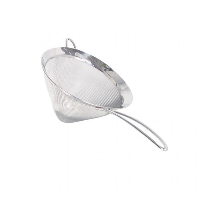Introducing the Cuisipro Cone Shaped Strainer, a kitchen essential that elevates your cooking experience to professional levels. With a generous size of 31.8cm, this fine-mesh strainer effortlessly separates seeds from tomato sauces, discards lumps from gravies and white sauces, and handles all your liquid straining needs with precision. The innovative cone shape channels liquids directly into any container, pot, bottle, or jar, while the included helper loop ensures stability, preventing unwanted slips into wide-mouth containers. Designed with a stay-cool loop handle, this strainer offers a comfortable grip, allowing for extended use without discomfort. Made from high-quality stainless steel mesh, it's not only durable but also dishwasher safe, making cleanup as easy as straining. Whether you are preparing a rich stock, a creamy soup, or any other culinary creation, the Cuisipro Cone Shaped Strainer guarantees a smooth, luxurious finish to your dishes. Upgrade your kitchen tools and make cooking a pleasure with this versatile strainer, perfect for both amateur cooks and seasoned chefs alike.