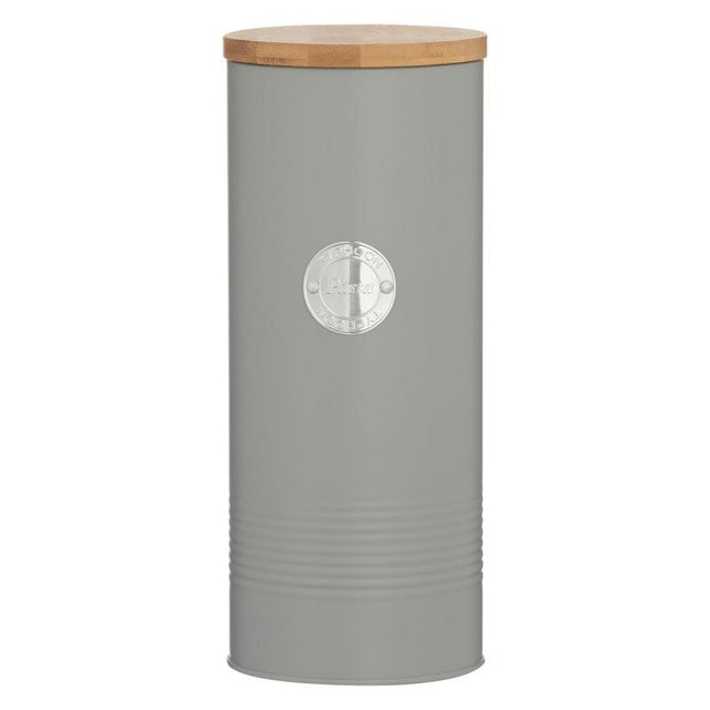 Living Grey Pasta Canister. Hard wearing and durable high quality manufacture. Advanced production techniques. Bamboo wood sourced from sustainable forests.