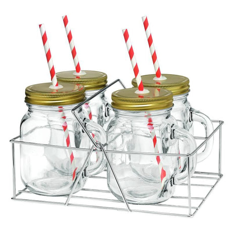 Avanti Mason Jar With Handle And Candy Stripe Straw 400ml | Set Of 4