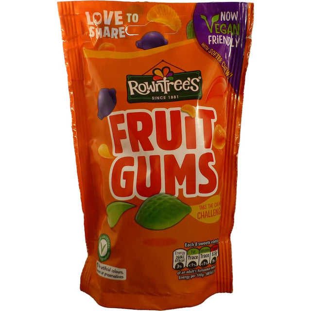 Indulge in the delightful taste of Rowntrees Fruit Gums Vegan Bag 150g! These classic chewy sweets are a plant-based treat that everyone can enjoy. Perfectly fruity, these vegan gummy candies are made with real fruit extracts, ensuring each bite is bursting with flavors like strawberry, orange, lemon, blackcurrant, and lime. Rowntrees Fruit Gums are free from animal products, making them ideal for vegans and those with dietary restrictions. Experience the chewy goodness without compromising on taste or ethics! Packaged conveniently in a 150g bag, it's perfect for sharing or enjoying on your own. Whether you’re on a road trip, at a movie night, or simply satisfying your sweet tooth, Rowntrees Fruit Gums Vegan Bag is a guilt-free indulgence that brings joy to every moment. Treat yourself or a loved one to these delicious vegan sweets today and taste the difference of quality ingredients. With no artificial colors or flavors, you can enjoy a classic confection that’s as wholesome as it is flavorful. Grab your Rowntrees Fruit Gums Vegan Bag now and add a burst of fruity fun to your day!