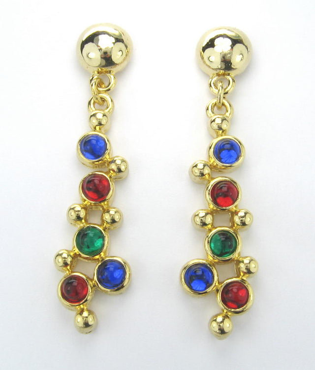 Earrings - Ac. Gold Blue. Red. Green -