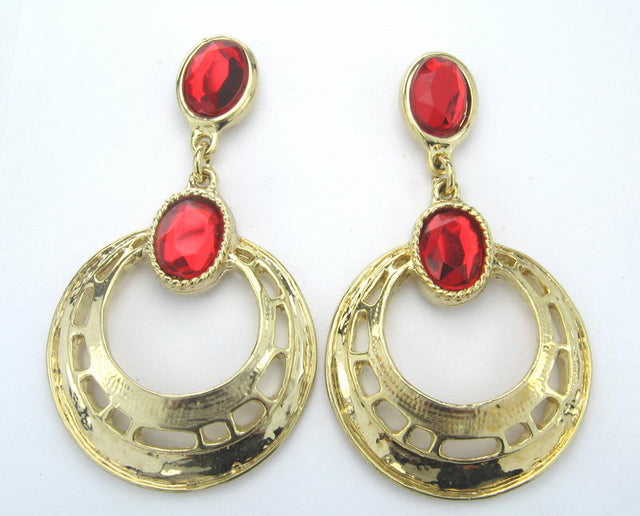 Earrings - Gold. Ac Red Acrylic Stone -