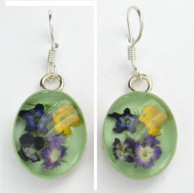 Sterling Silver Earrings - Oval Multi Flower with Green