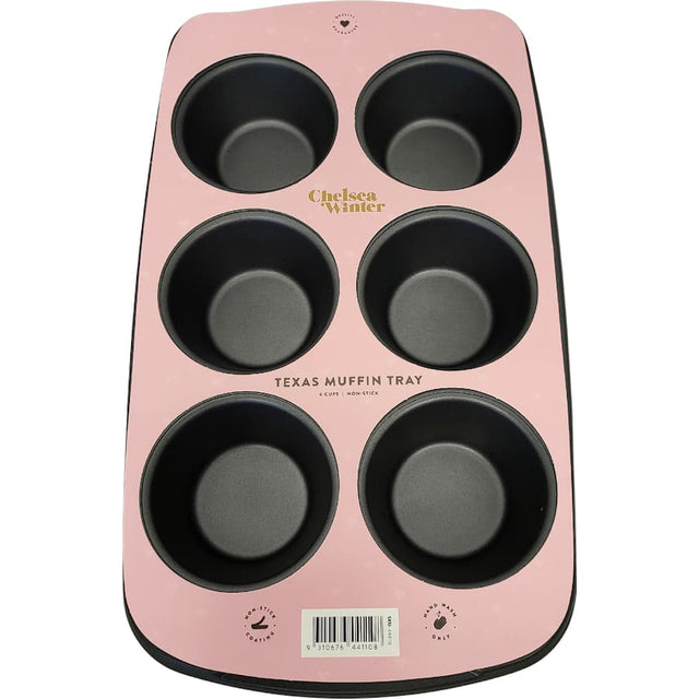Bake yourself happy with chelsea winter's high quality, affordable bakeware range. Made from tough carbon steel with a durable us non-stick coating and rolled edges for strength, thanks to chelsea you'll no longer pay through the nose for top-notch muffin tins. For times when a regular-sized muffin simply isn't enough, this 6 cup texas muffin tray delivers the goods - in a big way! perfect for keeping even the largest of appetites satisfied.