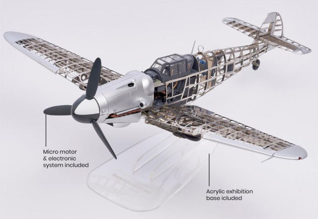 Ignite your passion for aviation with the Plastic Kitset - 1/16 Me 109 w/lights & e-motor, an exceptional model kit that brings the iconic Messerschmitt Bf 109G to life. This meticulously crafted 1/16 scale plastic model is perfect for aircraft enthusiasts and collectors, seamlessly blending intricate details with high-quality construction. Each kit features an innovative e-motor that powers the propeller, delivering stunning realism to your display. Embedded LED lights in the wings, tail, and cockpit further enhance the breathtaking visual effect, making it a standout piece in any collection.