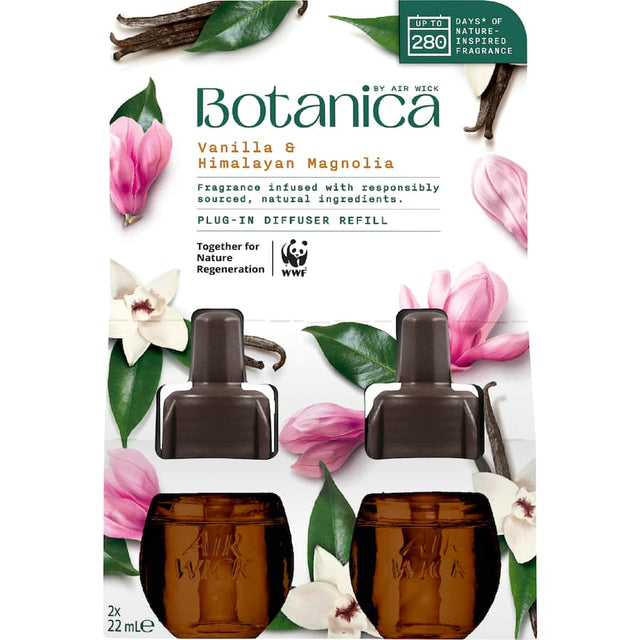 Botanica Plug-in Diffusers use fragrances infused with natural ingredients carefully sourced in a way that respects our planet. Long lasting fragrance for up to 280 days*. *For 2 refills, based on 12 hours daily usage on minimum settingAn indulgent and sweet fragrance of sub-drenched magnolia freshly harvested from the Himalayas married with creamy vanilla and a touch of sweet honey, peach and coconut.