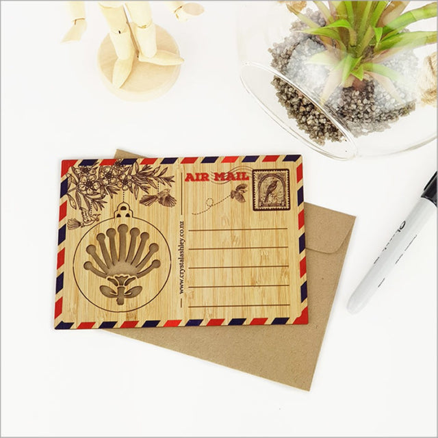 Bamboo Postcard - Pohutukawa Bauble (15.6 x 11cm)