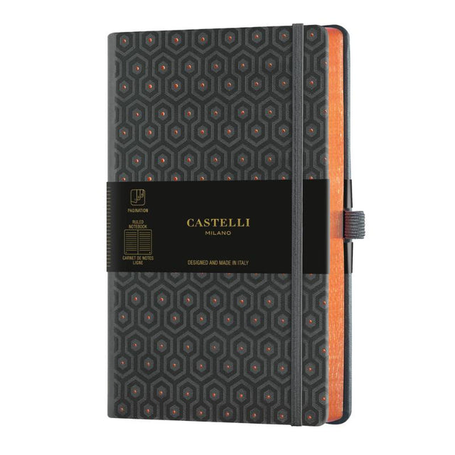 Introducing the exquisite Castelli Notebook Copper and Gold A5 Ruled Honey Copper, where elegant design meets functionality. Crafted with precision and attention to detail, this luxurious notebook features a striking copper and blind embossed cover that captures the essence of Italian artistry. The Honeycomb design not only stands out visually but is also enhanced with premium materials that promise durability and sophistication.