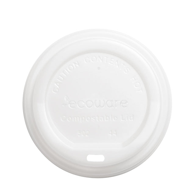 Ecoware white coffee cup lids offer a secure, leak-proof fit for our hot EcoCups. Made of 100% renewable resources, an Ingeo bioplastic, our lids are certified industrially compostable.