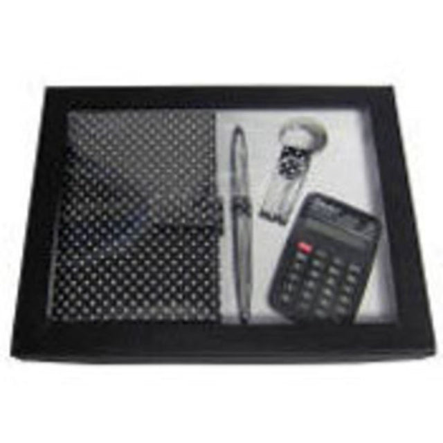 Introducing our stylish Stationery Polka Dot Set Boxed - Black, the perfect addition to your office or study desk. This chic stationery set features an elegant black polka dot design, making it not only functional but also fashionable. Included in this set are a beautifully crafted diary for jotting down your thoughts, a sleek pen that writes smoothly, a trendy keyring to keep your keys organized, and a handy calculator for all your numerical needs. This all-in-one stationery kit is ideal for students, professionals, or anyone who appreciates quality stationery. The Polka Dot Stationery Set wrapped in a stylish box makes for a perfect gift for friends, family, or colleagues. Upgrade your workspace with this versatile and aesthetically pleasing stationery collection. Shop now and experience the elegance of our Black Polka Dot Set, available exclusively at Smartfox.