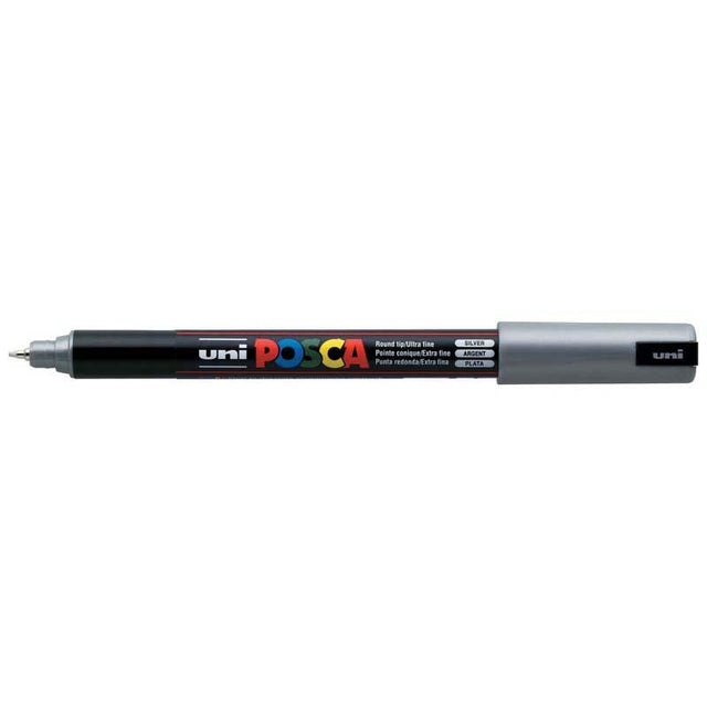 Uni Posca Marker 0.7mm Ultra-Fine Pin Tip Silver PC-1MR