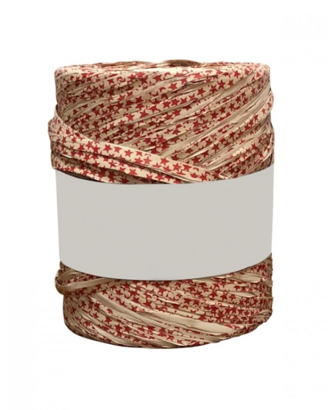 Ribbon - Star Raffia 5mm X 200mtrs Red on Natural