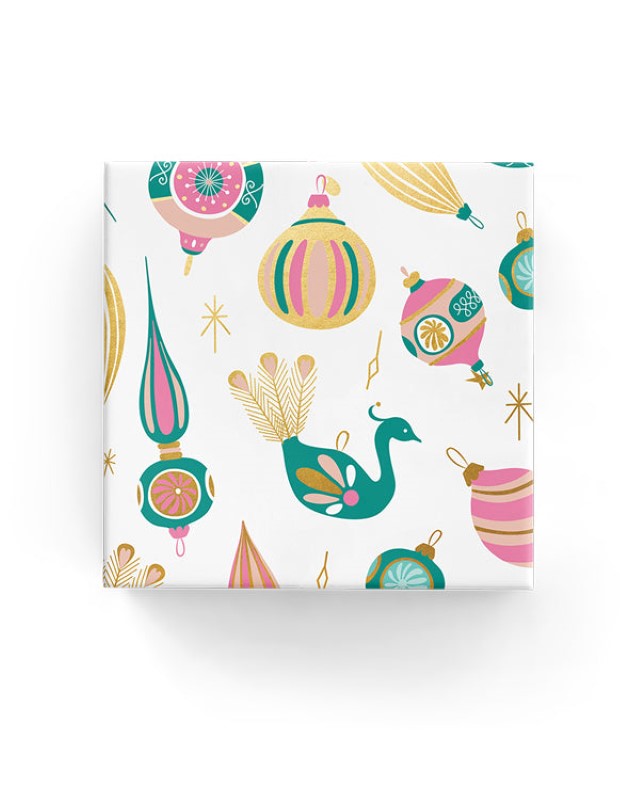 Wrapping Paper - Vintage Xmas Baubles Wrap Pink Peach Jade Gold