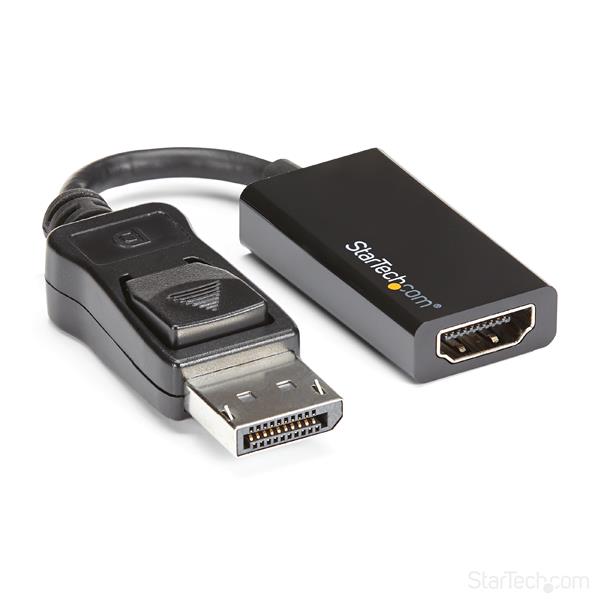 This DisplayPort to HDMI adapter lets you connect an DP-equipped video source, such as your laptop to an HDMI TV, monitor, or projector.Maximize Your ProductivityThis DisplayPort to HDMI converter lets you add a second high-definition monitor to your laptop, providing the additional screen space you need to multi-task more efficiently and accomplish more in the same amount of time.As well, you can use this TV adapter to connect your DisplayPort device to an HDMI television, enabling you to connect your laptop to your TV or projector.Astonishing Picture QualityUnlike many 4K HDMI converters that only support a 30Hz refresh rate, this adapter works with HDMI 2.0 displays that can deliver output resolutions of up to 3840x2160p at 60Hz. Support for HDMI 2.0 means this adapter can support bandwidth up to 18Gbps, making it the ideal solution for performing high-resolution tasks such as editing 4K video.This adapter is also backward compatible with 1080p displays, which ensures that it will work with lower resolution monitors, TVs, or projectors around your home or office.Hassle-Free SetupThis active DP to HDMI converter offers plug-and-play installation, providing a hassle-free setup with no software or drivers to install.This DisplayPort to HDMI adapter is backed by a StarTech.com 3-year warranty and free lifetime technical support.Note: To achieve 4K resolution at 60Hz, a Display Port 1.2 output and an HDMI 2.0 display are required.