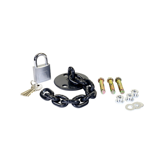 PcLocs Lock Down Kit for Rev Carts #PCL8-10010 Heavy duty lock down kit including 11-link chain, padlock & keys, floor plate and bolts for securing Carrier and iQ carts to floor or wall