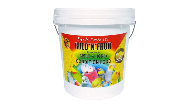 Best Bird Gold'n'Fruit 3.2kg is a premium bird food designed to boost your birds' health and vitality. This nutritionally balanced mix features apple and honey flavors, appealing to all bird species. Ideal for canaries, finches, and parrots, it serves as a nutritious treat complementing your bird’s regular diet. Enriched with essential vitamins, minerals, and 12% protein, it supports growth and active lifestyles. Made from high-quality local and imported ingredients in New Plymouth, New Zealand, it includes corn, apple, millet, wheatgerm, and sunflower oil that birds adore. The inclusion of high-grade soya protein isolate ensures optimal nutrition, enhancing plumage and energy levels. Feeding is simple—offer in treat-sized portions alongside regular feed and promptly replace uneaten food to keep it fresh. Elevate your birds' dining experience with Gold'n'Fruit, the top choice for responsible bird owners seeking the best for their feathered friends. Add this wholesome bird food to your cart today and watch your birds flourish in beauty and energy.