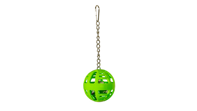 Featherland Paradise made the Holi Foraging Ball for small and medium birds to enjoy.It’s made from BPA-free plastic, so you know it is safe for your bird, and has a bell inside.It can hang in any cage, and the plastic has slots so you can hide treats inside the ball.You will love this toy, it’s a ton of fun for your bird.Dimensions: 24.1 x 8.9 x 8.9cm
