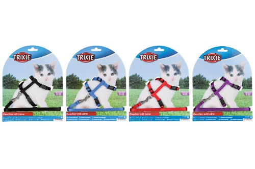 Kitten Harness with Leash for small cats and kittens continuously adjustable webbing tape with snap buckles made of nylon various colours Measurements: 19-31 cm/8 mm