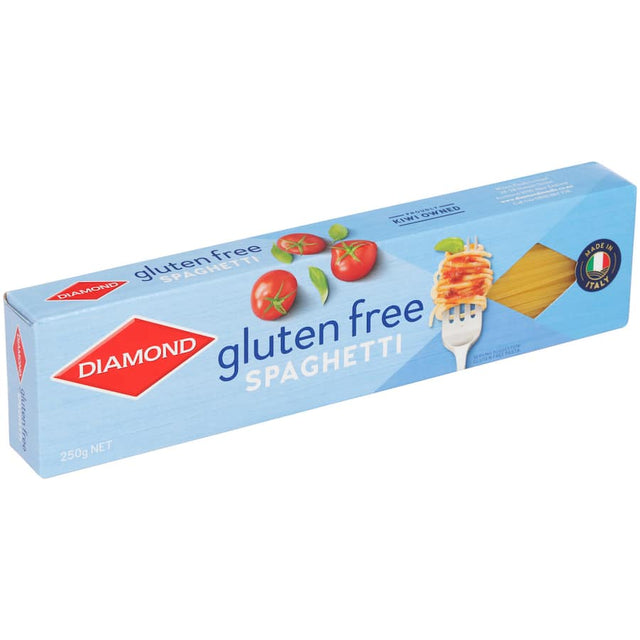 Discover the delightful world of Diamond Pasta Spaghetti Gluten Free, a premium 250g pasta made in Italy from carefully selected maize and rice flour. This gluten-free spaghetti is perfect for those seeking a healthier alternative without compromising on taste or texture. Crafted in traditional Italian style, our Diamond Pasta provides a delicious base for your favorite sauces, making every meal a celebration of flavors. With a quick cooking time of just 8-10 minutes, it's an ideal choice for busy weeknight dinners or elegant culinary creations. Enjoy a nutritious and satisfying gluten-free dining experience with Diamond Pasta Spaghetti, where every bite brings quality and taste. Elevate your pasta dishes with Diamond's perfect al dente consistency and celebrate the joy of gluten-free eating without any fear of compromise. Perfect for vegans and those with gluten sensitivities, this pasta is versatile enough to complement any dish. From classic marinara to rich Alfredo, your gluten-free pasta night will never be the same. Indulge in a wholesome meal with Diamond Pasta, the authentic Italian choice for gluten-free pasta lovers. Remember, a gluten-free lifestyle doesn't mean you have to sacrifice flavor or quality; with Diamond Pasta, you can have it all!