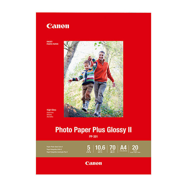 Elevate your printing experience with the Canon A4 PhotoPlus Glossy Paper - 20 pack. Designed for photographers and creatives, this high-quality photo paper delivers exceptional color reproduction and a stunning glossy finish that brings your images to life. Perfect for printing vibrant photos, this A4-sized glossy paper is ideal for family portraits, travel memories, and professional presentations. Engineered to provide sharp detail and deep contrast, each sheet ensures your photographs come out looking professional and polished. Whether you're printing snapshots at home or preparing for an important presentation, the Canon A4 PhotoPlus Glossy Paper is your go-to choice for producing eye-catching prints. Its quick-drying properties prevent smudging, making it an excellent option for both inkjet and laser printers. With 20 sheets per pack, you’ll have plenty of paper for all your printing needs. Upgrade your photo printing with Canon A4 PhotoPlus Glossy Paper for stunning results every time. Experience the difference in photo quality today and transform your cherished memories into art that you can showcase or gift. Order your Canon A4 PhotoPlus Glossy Paper - 20 pack now and take your photo printing to the next level, ensuring all your favorite moments are printed with brilliance and clarity.