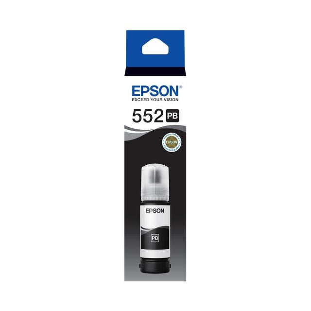 Introducing the Epson T552 Ph Blk Eco Tank, the ultimate solution for high-volume printing at an economical cost! This innovative printer utilizes cutting-edge EcoTank technology, eliminating the need for traditional cartridges while providing exceptional print quality and vibrant colors. With a generous ink tank capacity, the Epson T552 ensures you enjoy hassle-free, continuous printing without the frequent ink replacements. Designed for both home and office use, this efficient printer delivers sharp text and stunning images, perfect for all your printing needs. The user-friendly interface and wireless connectivity options make it easy to print from your computer, smartphone, or tablet, enhancing your productivity. Choose the Epson T552 Ph Blk Eco Tank for a sustainable and cost-effective printing solution that meets the demands of modern life. Ideal for users looking for an all-in-one printer that combines performance and value, the EcoTank technology saves you money and reduces waste. Experience the convenience of refillable ink tanks and say goodbye to cartridges with the Epson T552. Order your eco-friendly printer today and discover the future of printing at unbeatable prices!