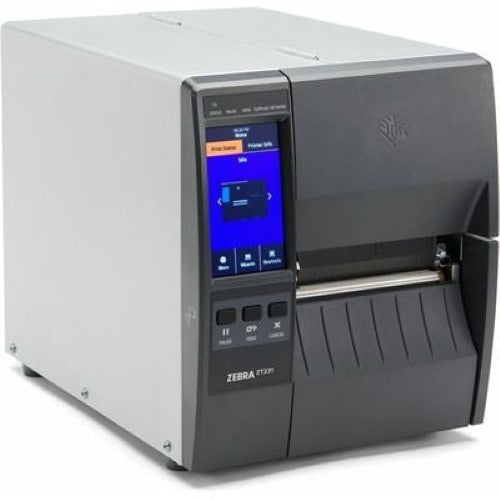 OVERVIEW: Zebra TT Printer ZT231R; 4, 203 dpi, Thermal Transfer, Tear, UK/AU/JP/EU Cords, USB, Serial, Ethernet, BTLE, USB Host, RFID (Global except US/Canada/Japan), EZPL Smart Features. Small Investment. Big Payoff. Your operation is growing – and you deserve a reliable printer that can support it. One that keeps up with your rising demands without being too complicated or breaking the bank. That's the ZT231. It's highly durable and easy-to-use with just the smart features you need. Features that will drive your business forward like RFID, fast print speed, color touchscreen, improved connectivity options, future upgradeability and more – all within a small, space-saving footprint. Go beyond just hardware to get the type of autonomy, intelligence and security that offers true peace of mind and protection. Shield yourself from cyberattacks. Forget failures. With Zebra, you get everything you need to print far into the future without having to choose between performance, reliability or security. You can have it all. And, you can experience the long-term payoff that comes from having a dedicated partner with 50 years of thermal printing expertise by your side.