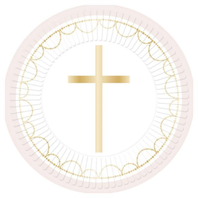 Pink 23cm round paper plates set of 8 with floral design for elegant, eco-friendly celebrations and easy cleanup.