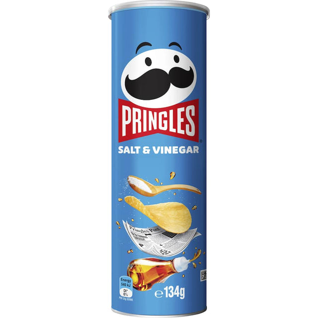 Discover the incredible taste of pringles salt & vinegar flavour stacked potato chips. Our chips are uniquely shaped and perfectly seasoned! experience the irresistible crunch and delicious flavour in every bite! it's the ideal savoury snack for a barbecue, picnic or party. Once you pop, you can't stop!