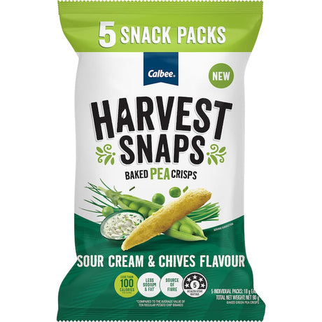 $8.30 AUDUnit price /UnavailableHarvest Snaps Pea Crisps Sour Cream & Chives 5 pack 90g