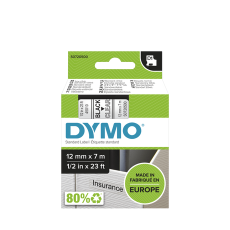 $265.00 AUDUnit price /UnavailableDymo D1 Labelling Tape Black On Clear 12mm x 7m (Pack)