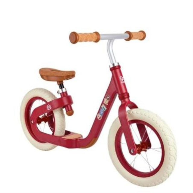 Lightweight aluminium and magnesium alloy balance bike Ergonomically designed saddle has an open center for comfort Ergonomically designed handlebars are slightly bent for a comfortable, relaxed grip Benefits? Saddle height is adjustable to suit kids at different stages Handle under the saddle makes the bike easy for Mum and Dad to carry Low footrest area is perfect for smaller kids to rest their feet Handles, saddle and footrest area are made from renewable and eco-friendly cork which is warm and soft Puncture-proof PU tyres need no inflation and are solid, durable and flexible.