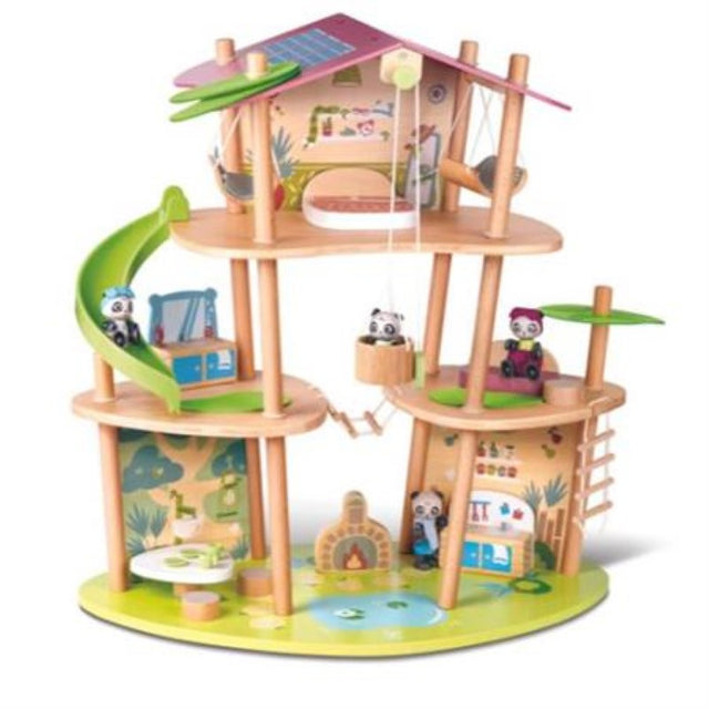 Introduce your child to the wonders of sustainability with the Bamboo House Playset - Hape Green Planet PandasĂ from Smartfox. This enchanting playset inspires imagination while teaching the importance of green energy and eco-friendly living. Featuring a beautifully designed bamboo house, children can immerse themselves in the delightful world of Pandas, where Pam and their panda family showcase their passion for clean energy and environmental awareness. The Bamboo House comes complete with a variety of accessories, including a fun elevator basket and a playful slide, ensuring endless hours of interactive play. This high-quality, eco-friendly playset promotes creative storytelling and role-playing, encouraging young minds to explore the concept of renewable resources. Crafted with sustainable materials, the Hape Green Planet PandasĂ playset not only entertains but also educates children about the essentials of taking care of our planet. Perfect for toddlers and preschoolers, this bamboo playset makes a great gift that combines fun with valuable lessons in sustainability. Bring home the Bamboo House Playset today and let your child join the adventurous journey towards a greener future with Pam and the pandas!