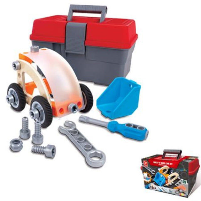 Introducing the Hape Car Set, a vibrant and engaging toy designed to inspire creativity and imaginative play in children. This wooden car-building set allows kids to construct their own vehicles, complete with wheels that actually turn. Your little builders will find endless hours of joy as they choose from five unique car designs or unleash their imagination to create a custom fantasy vehicle. Each Hape Car Set includes high-quality wooden sections, screws, nuts, and everything necessary for building sturdy and fun cars. Designed for ages 4 and up, this educational toy promotes fine motor skills, hand-eye coordination, and problem-solving abilities. The eco-friendly materials and child-safe finishes make this car set not only safe but also sustainable, ensuring a guilt-free playtime experience. With the Hape Car Set from Smartfox AU, give your child the gift of creativity and technical skills in one exciting package. Perfect for playdates, family bonding, or solo adventures, this set is an ideal addition to any playroom. Grab yours today and watch as your child's love for construction and design flourishes!