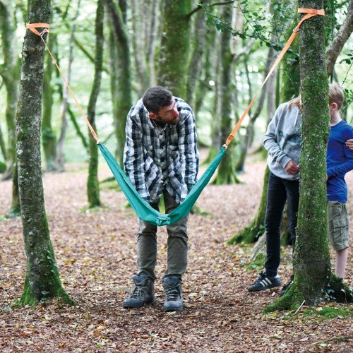 Relax when youÂ??re out in nature with this fun portable swing set! Once set up between two strong trees, it provides a fun swing or a place for children to sit.