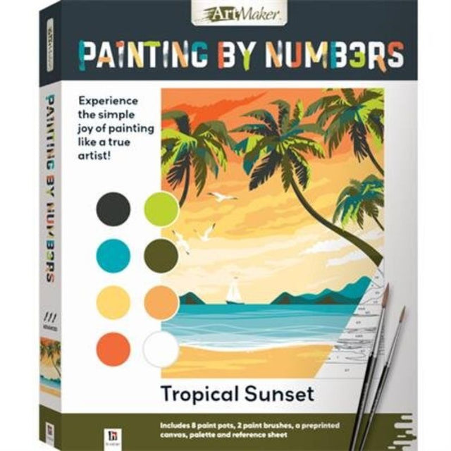 Unleash your inner artist with our Paint by Numbers Kit - Art Maker Tropical Sunset! This comprehensive painting kit is perfect for beginners and seasoned artists alike, offering everything you need for hours of creative expression. With high-quality materials, including a canvas artboard panel, a reference sheet, a color palette, 8 vibrant paint pots, and 2 fine paint brushes, you'll easily create a stunning tropical sunset masterpiece. The Paint by Numbers system simplifies the painting process, allowing you to effortlessly bring your artwork to life, one section at a time. This captivating project not only enhances your painting skills but also serves as a relaxing and mindfulness activity, helping you focus your attention while creating something beautiful. Dive into the worlds of color and creativity and experience the joy of painting with our Tropical Sunset kit. Perfect for home decor, gifts, or simply a delightful way to unwind, this kit is designed for everyone, making it a must-have for art lovers. Create your piece of paradise today! Product Dimensions: 290 x 230 x 28mm.