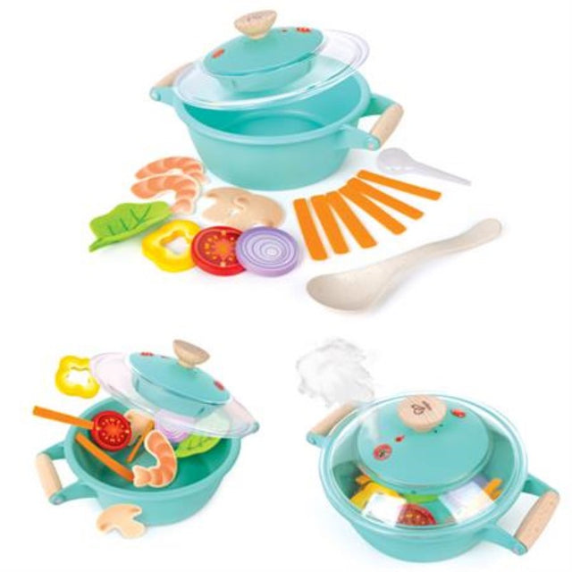 Cook delicious meals just like a grown-up with this realistic soup set that makes bubbling sound effects and produces a cool mist that looks just like real steam! Includes all the food and accessories you need.