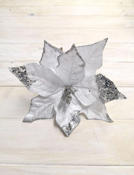 $13.20 AUDUnit price /UnavailableArtificial Poinsettia w/Sequins - Glittered (Silver)