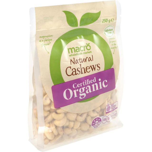 Discover the delicious crunch of Macro Organic Natural Cashews Raw, your perfect snack solution for a healthier lifestyle. These premium cashews are not just tasty; they are also packed with nutrients that make them an ideal addition to your daily diet. Grown organically, our cashews are free from additives and chemicals, ensuring you enjoy only the purest flavor and texture. Whether you're looking for a quick snack on the go, incorporating them into a scrumptious stir-fry, or creating your own cashew nut bar, our raw cashews are versatile and easy to use. Their creamy consistency makes them perfect for blending into a delightful cashew spread, elevating your salads, or simply enjoying them straight from the bag. Each serving of Macro Organic Natural Cashews Raw delivers a satisfying crunch while being rich in healthy fats, protein, and essential vitamins and minerals. Indulge without guilt—grabbing a handful of these 15 nuts offers a nourishing boost to your energy levels, making it the ultimate choice for busy lifestyles. Treat yourself to the goodness of organic cashews as they are loaded with health benefits, including heart health support and improved digestion. Add Macro Organic Natural Cashews Raw to your kitchen pantry today and elevate your snacking game with the perfect balance of taste and nutrition, available exclusively at Smartfox AU.