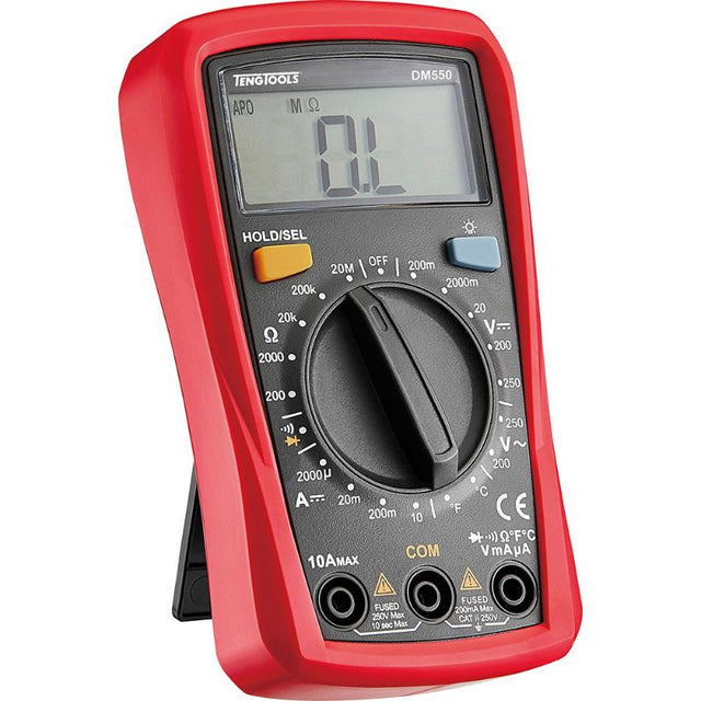 Discover the Teng Digital Multimeter, the ultimate tool for automotive and industrial maintenance professionals. This versatile DM550 multimeter is designed for accuracy and convenience, featuring an extra-large digital display with 16mm digits that ensures readability in any lighting condition. Invest in this essential device to measure voltage in both AC and DC, as well as DC current, bringing precision to your electrical tasks. The multimeter also includes a diode and continuity tester, making it a comprehensive solution for diagnosing electrical issues with ease.