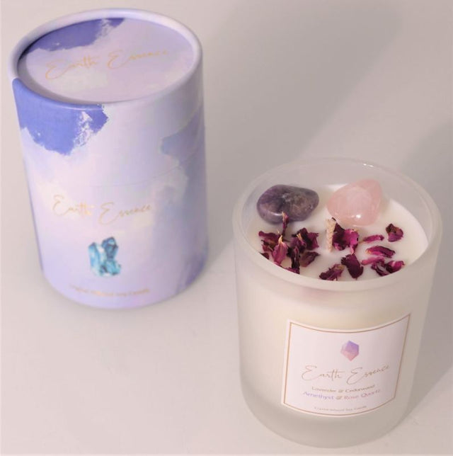 Crystal Soy Wax Candle - Amethyst Lavender Cedarwood and Rose Petals