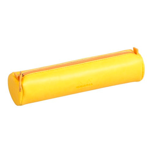 Discover the elegance of the Rhodiarama Pencil Case Round in vibrant Daffodil. This chic pencil case, measuring 21.5 cm in length with a 5 cm diameter, harmonizes style and functionality, making it a must-have accessory for students and professionals alike. Crafted from luxurious Italian leatherette, it features a soft finish that feels as good as it looks. The striking orange zip and embossed logo add a dash of character to this eye-catching design. Available in a dazzling array of nineteen colors, the Rhodiarama Round Pencil Case offers endless customization options. Pair it with a matching or contrasting Rhodiarama notebook for a coordinated stationery ensemble that stands out. Ideal for keeping your pens, pencils, and essential school supplies organized, this pencil case is perfect for school, office, or creative endeavors. Enhance your writing experience and showcase your personality with this stylish storage solution. Whether you're a student gearing up for a new school year or a professional seeking to elevate your workspace, the Rhodiarama Pencil Case in Daffodil is your perfect companion. Elevate your accessory game with this vibrant and functional pencil case that embodies the essence of creativity and organization in one beautiful package. Grab your Rhodiarama Round Pencil Case today and experience the blend of style and practicality for yourself!